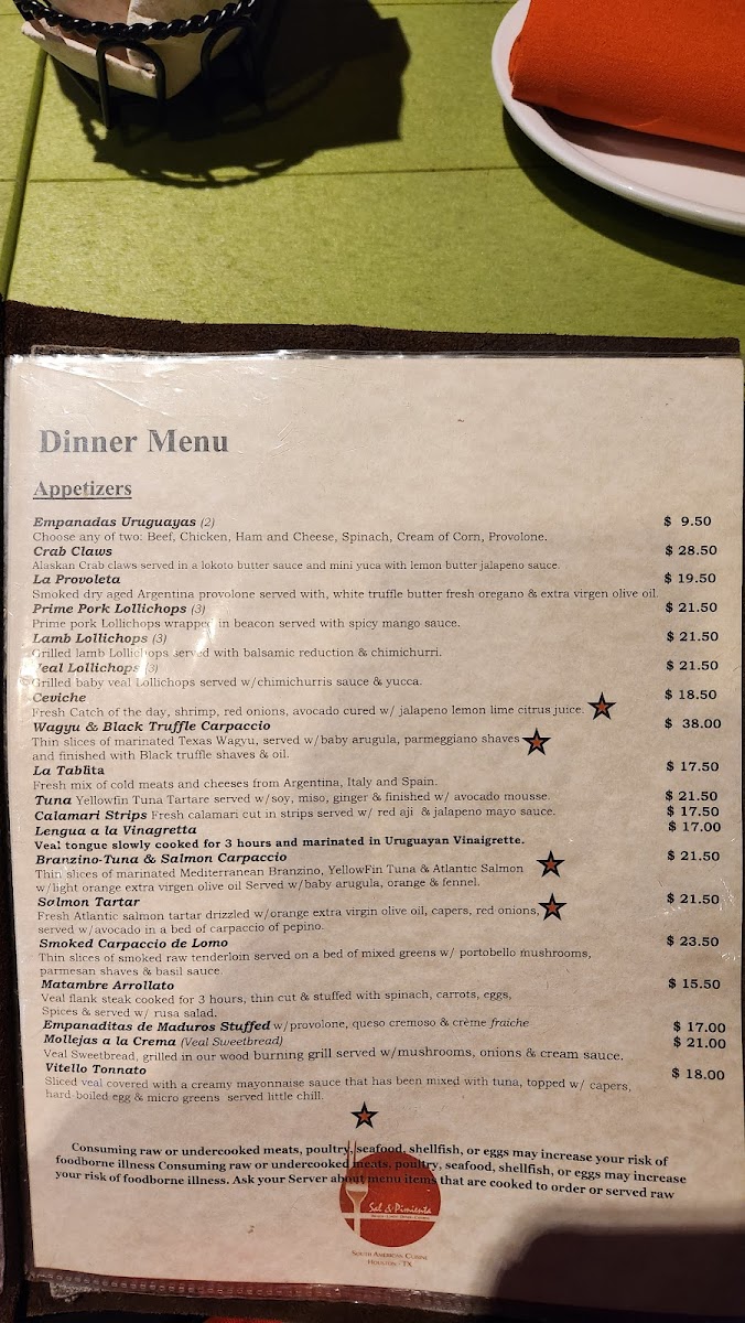 Welcome to Sal y Pimienta Kitchen, a culinary gem nestled in the heart of Houston's City Centre. This vibrant establishment showcases the best of Latin American cuisine, where each dish tells a story of tradition and flavor. Diners rave about the mixed parrilla meat platter, featuring mouthwatering skirt steak, lamb chop, and beef rib, all grilled to perfection. The Chimichurri sauce and Milanesa Napolitana earn stellar reviews, praised for their unforgettable taste and generous portions.